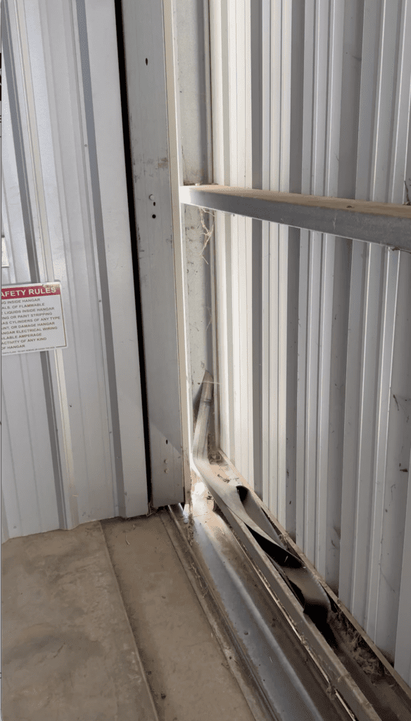 For nine months, tenants have continued to operate — and pay full lease rates — while these basic maintenance issues remain unresolved. During this time, failed and missing baffle seals have allowed birds, small animals, dirt, and dust to freely enter the hangars. Ongoing nearby construction has significantly worsened the problem, with fine dust constantly blowing inside. It is now winter time, and you can’t keep the hangar warm because there are 2-3 inch gaps between the door and the wall.